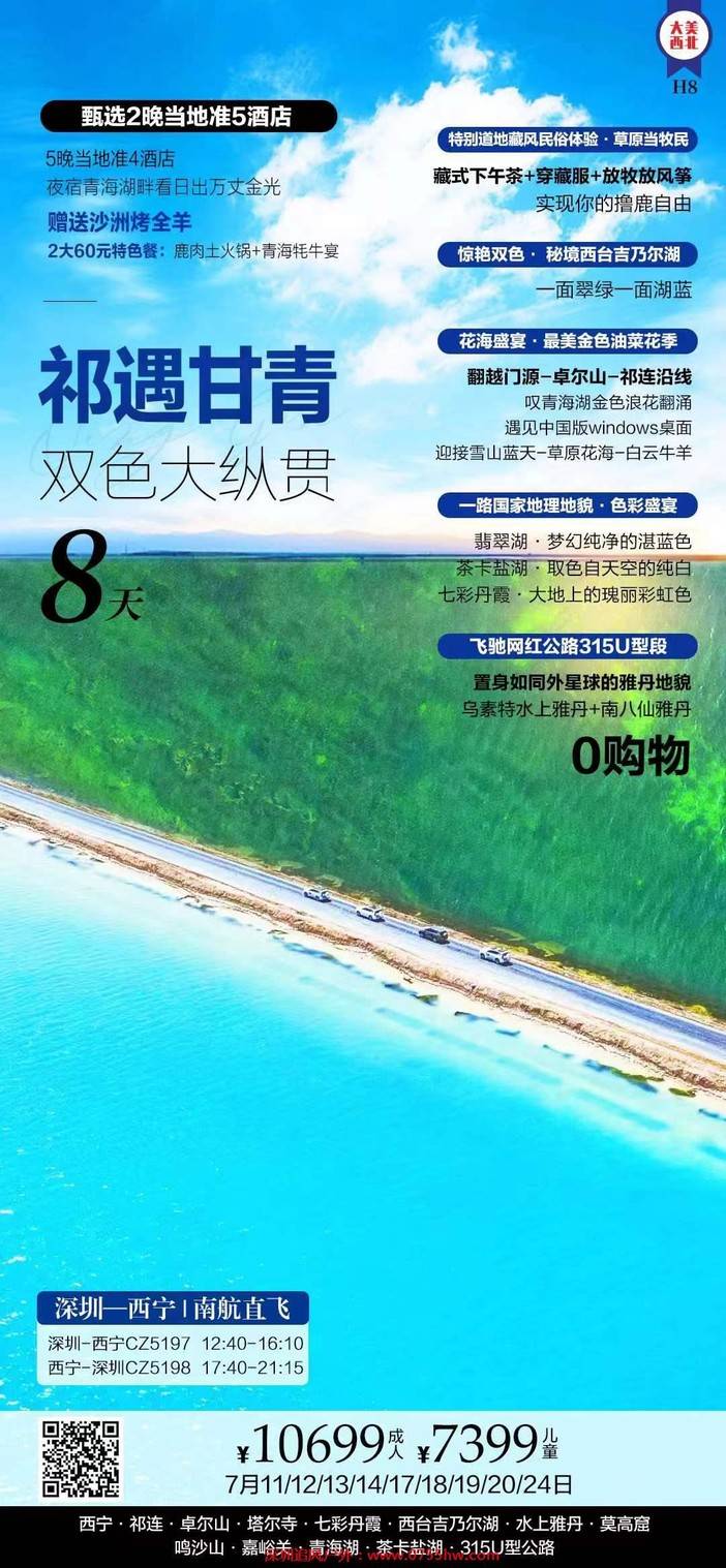 青海湖-翡翠湖-艾肯泉-水上雅丹-火星公路-察尔汗盐湖-神秘蓝洞盐湖-可可西里7日游!