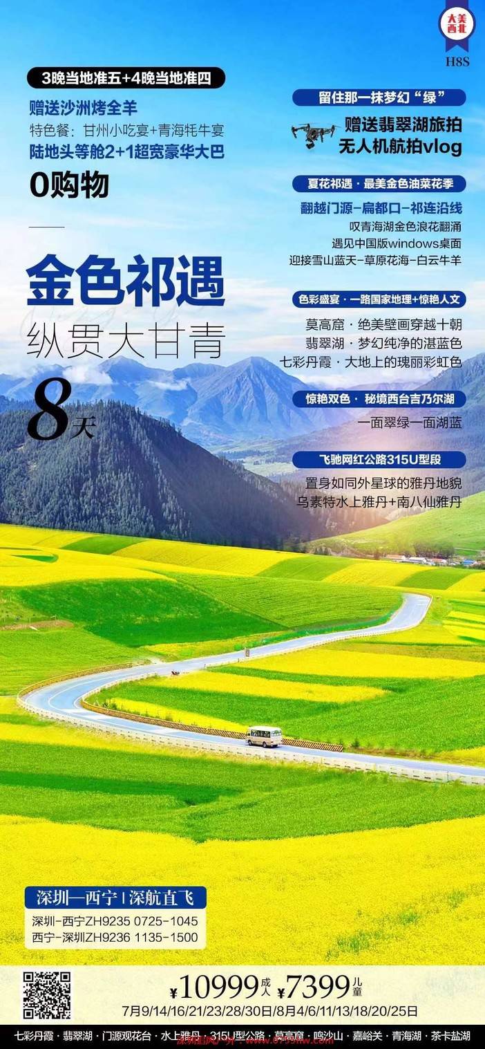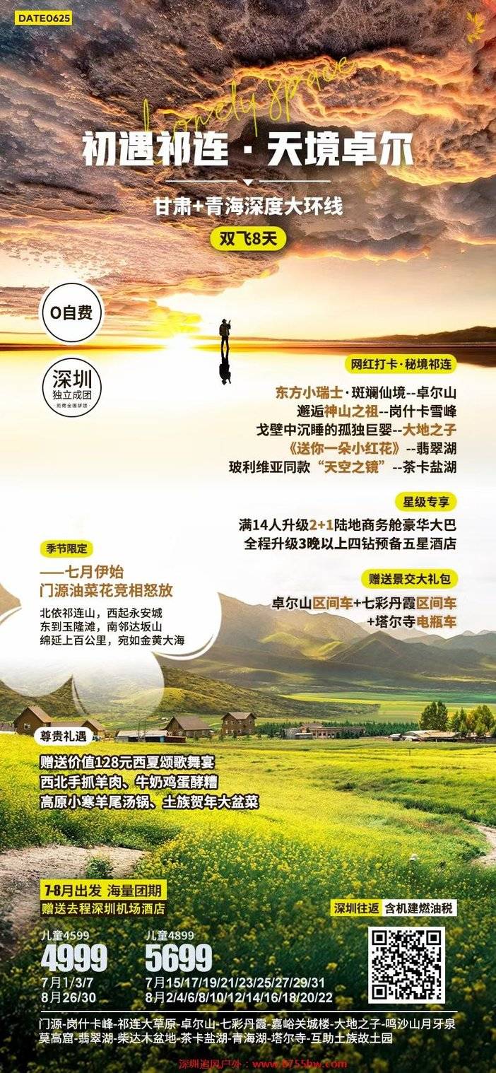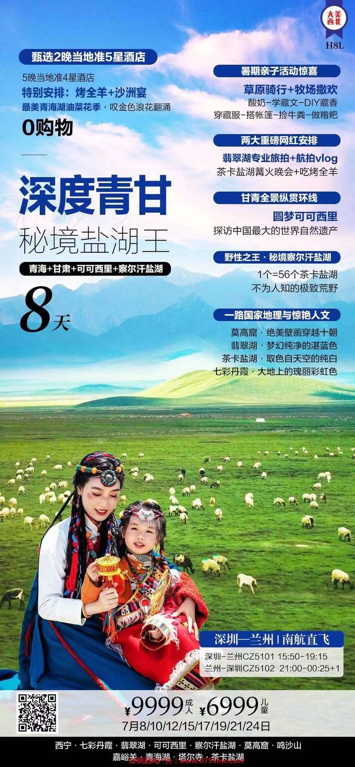 4-10月青海湖-茶卡盐湖-水上雅丹-鸣沙山月牙泉-莫高窟-嘉峪关-张掖丹霞-祁连-门源9日深度游!