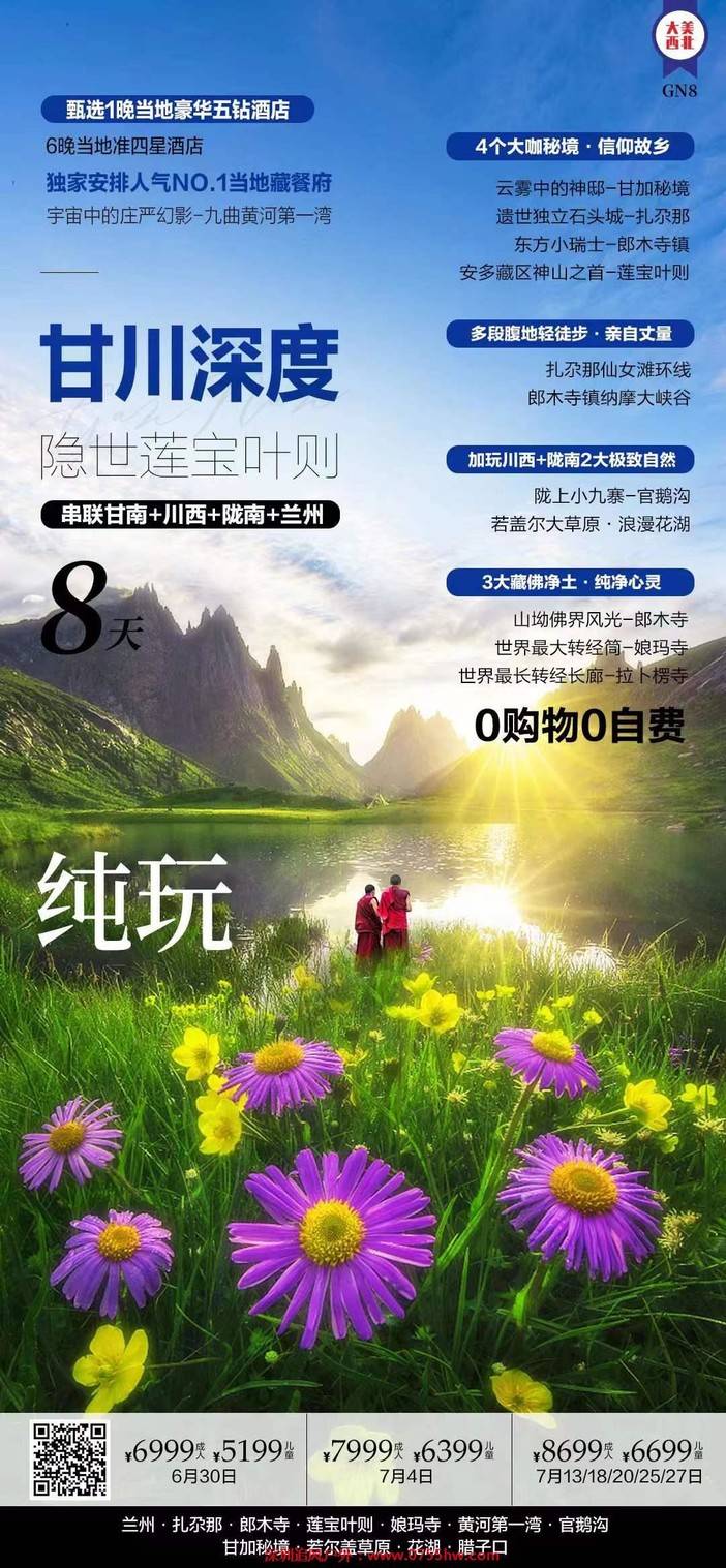 4-10月拉卜楞寺-扎尕那-郎木寺-黄河九曲-若尔盖花湖-莲宝叶则-米拉日巴佛阁环线7日盛宴!