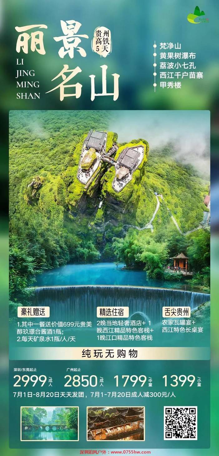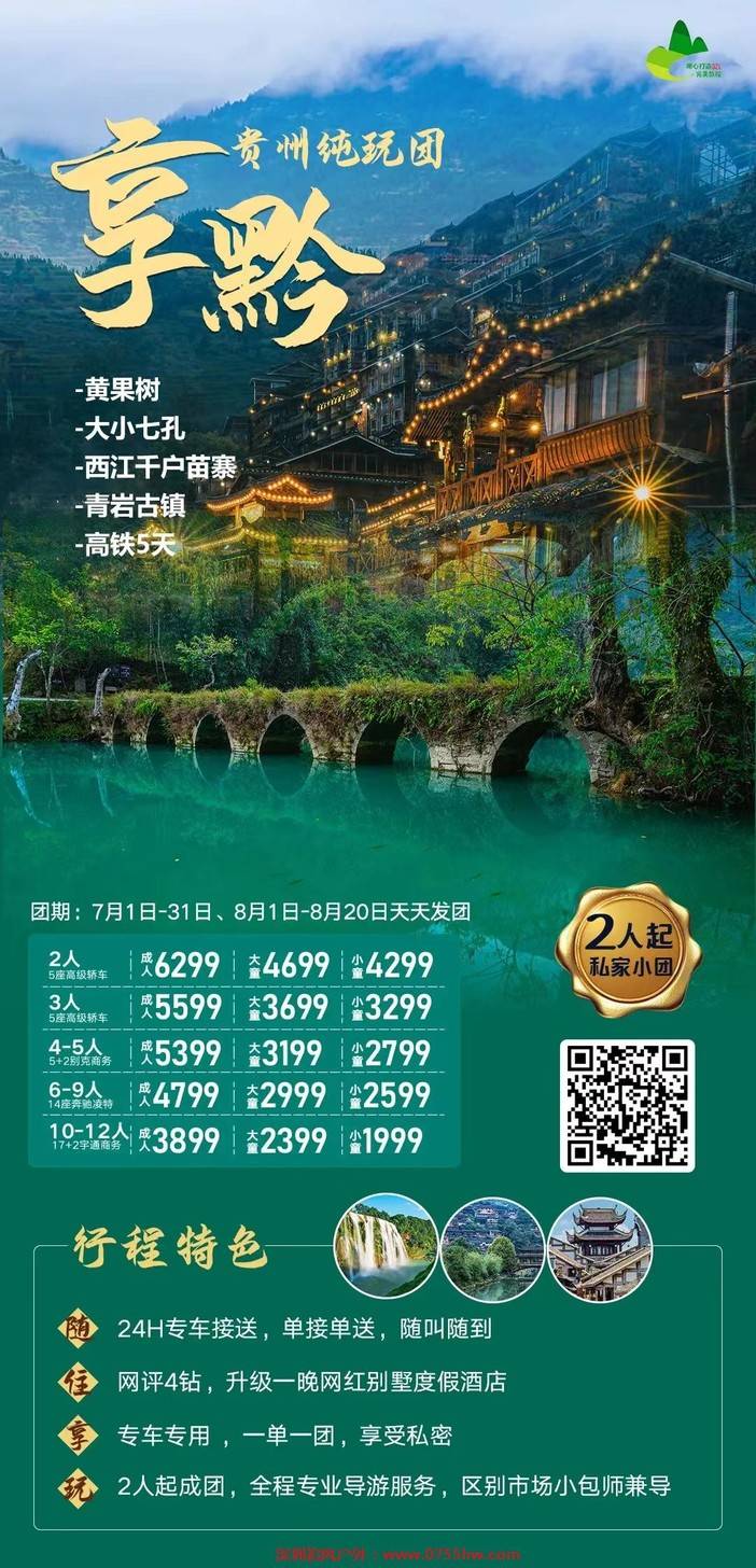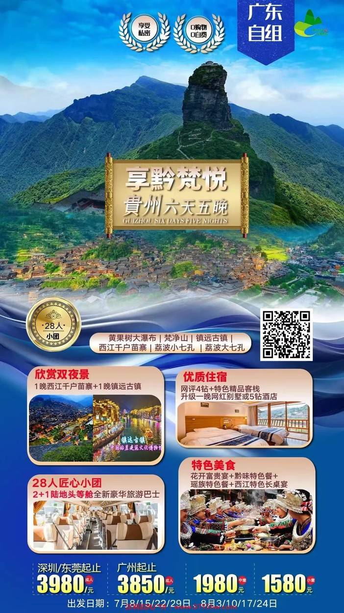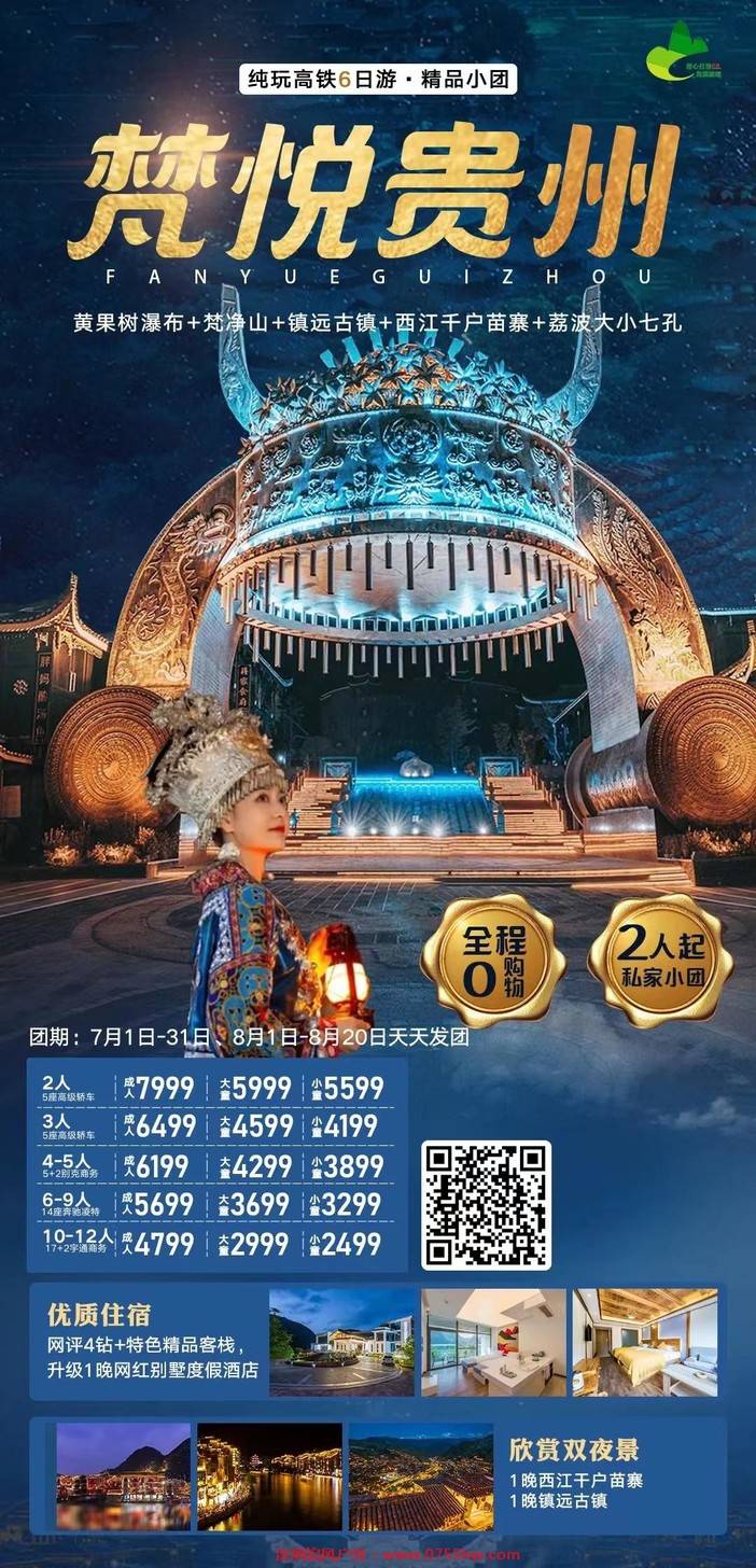 多彩贵州专线:黄果树瀑布、梵净山、西江千户苗寨、小七孔...