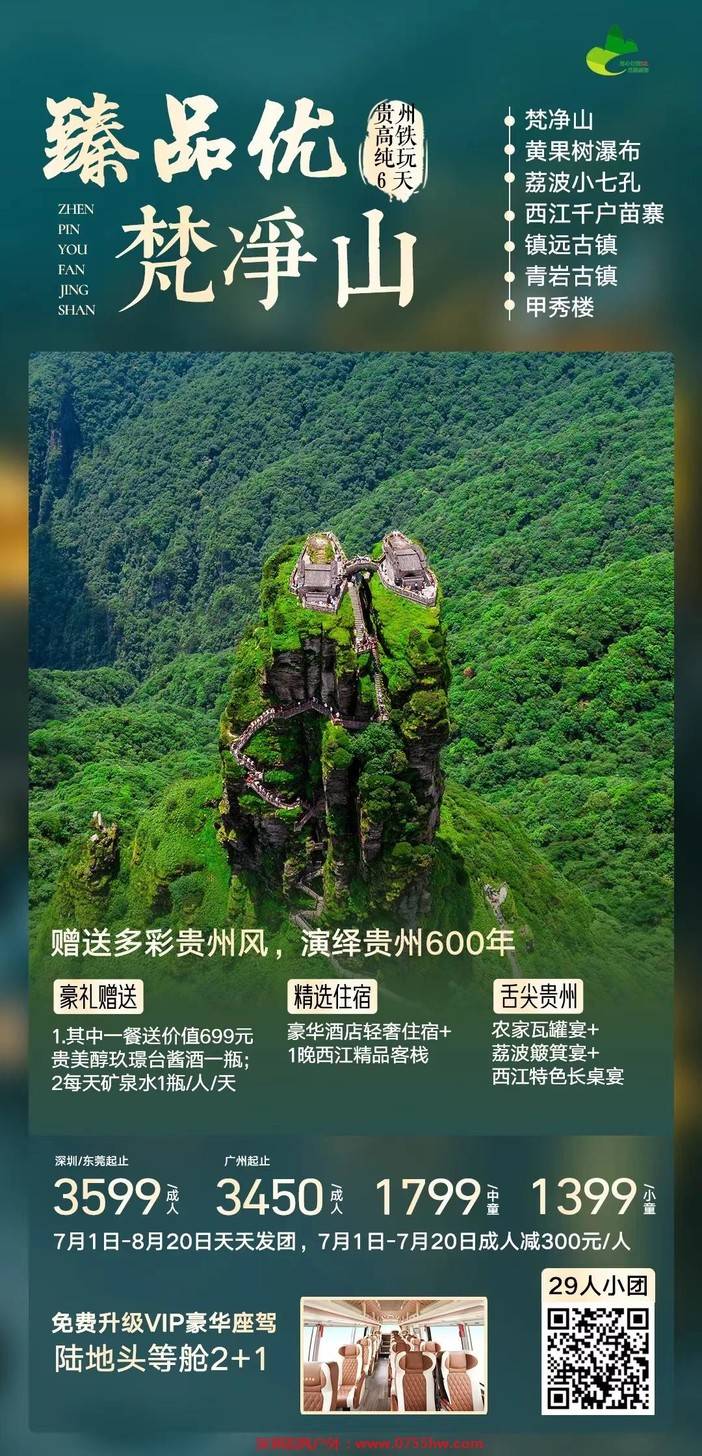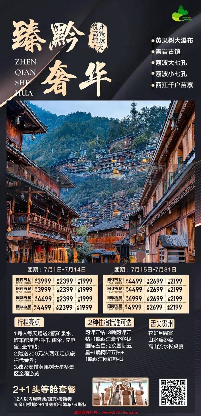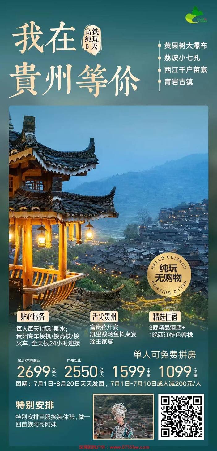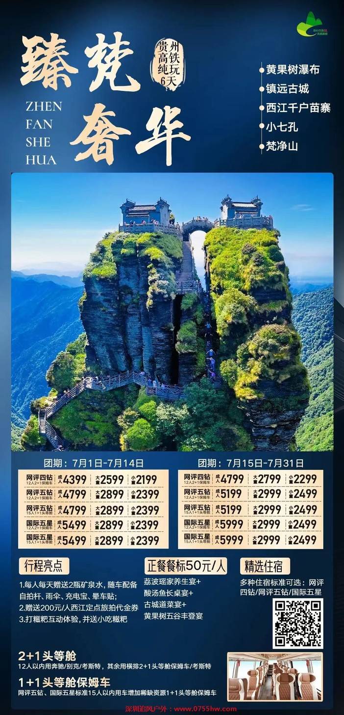 多彩贵州专线:黄果树瀑布、梵净山、西江千户苗寨、小七孔...
