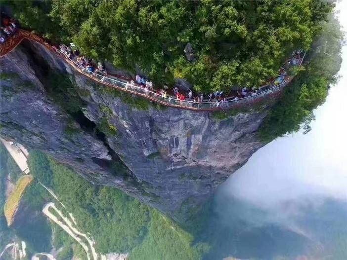 3、999级台阶顶至天门洞,可步行挑战。也可乘坐扶梯,共计12段(天门山扶梯64元/人未含),自由选择乘坐。上栈道的游客均要求戴上鞋套(鞋套费用5元/人未含),以保持玻璃桥的透明和干净。