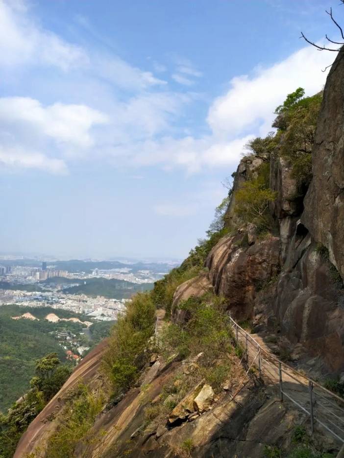 沿着景区内的小道下到鹅公髻的悬崖绝壁处,这是园山风景区内景色最美的地方,虽然大部分地方有护栏,但是大家还是要注安全,不能光顾着拍照了
