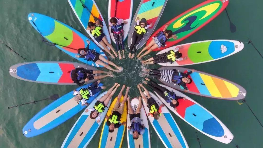 还可以桨板瑜伽、拼板花、多板竞速、桨板美人鱼等