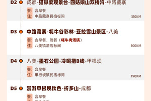 4、景交:四姑娘山双桥沟观光车70元/人(必须),亚拉雪山观光车90元/人(必须),墨石公园观光车20元/人(必须),冷噶措清洁费30元/人(必须)、冷噶措B线游客中心需换乘当地车往返200元/人(必须);