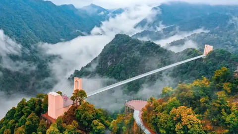 除了高空缆车,还有更刺激的玻璃索桥等着你体验。横穿两山的玻璃索桥全长330米、高差近200米,好像一条盘踞在山间的巨龙一般,气势逼人,惊险刺激。走在玻璃索桥上看三百山,山间云雾随风涌起又飘散,时光也都慢了下来。