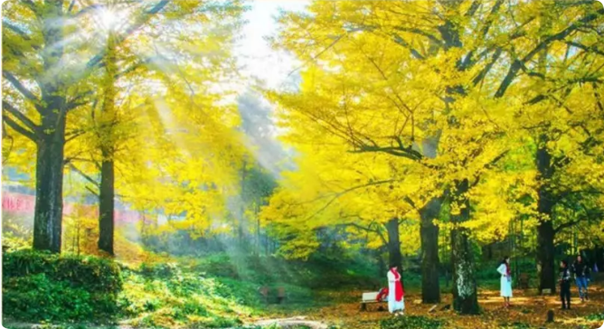 桐子坳景区旅游资源极为丰富,尤以银杏著称,素有“中国银杏第一村”的美称。它不像春日的妩媚,也不像夏日的狂野。桐子坳的秋天以它特有的美,令人流连,令人动容。置身于金色的大地中,看落叶纷纷,层林尽染,美哉!妙哉!