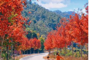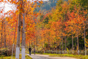 13:30左右岭南红叶世界,新丰县素有“岭南红叶之乡”之称,而岭南红叶世界所在的青云山海拔高,温差大,冬有霜冻,有助于 枫叶内花青素的形成。园区内除野生枫树外,另外种植了上千亩美国红枫、鸡爪槭等红叶树种,共8万多棵。 满目映红,片片枫叶情,观赏价值高,造就了北有香山红叶公 园,南有岭南红叶世界的绝美枫叶景观,并且每年春 秋两季均可观赏枫叶。大家可自由赏枫拍照....