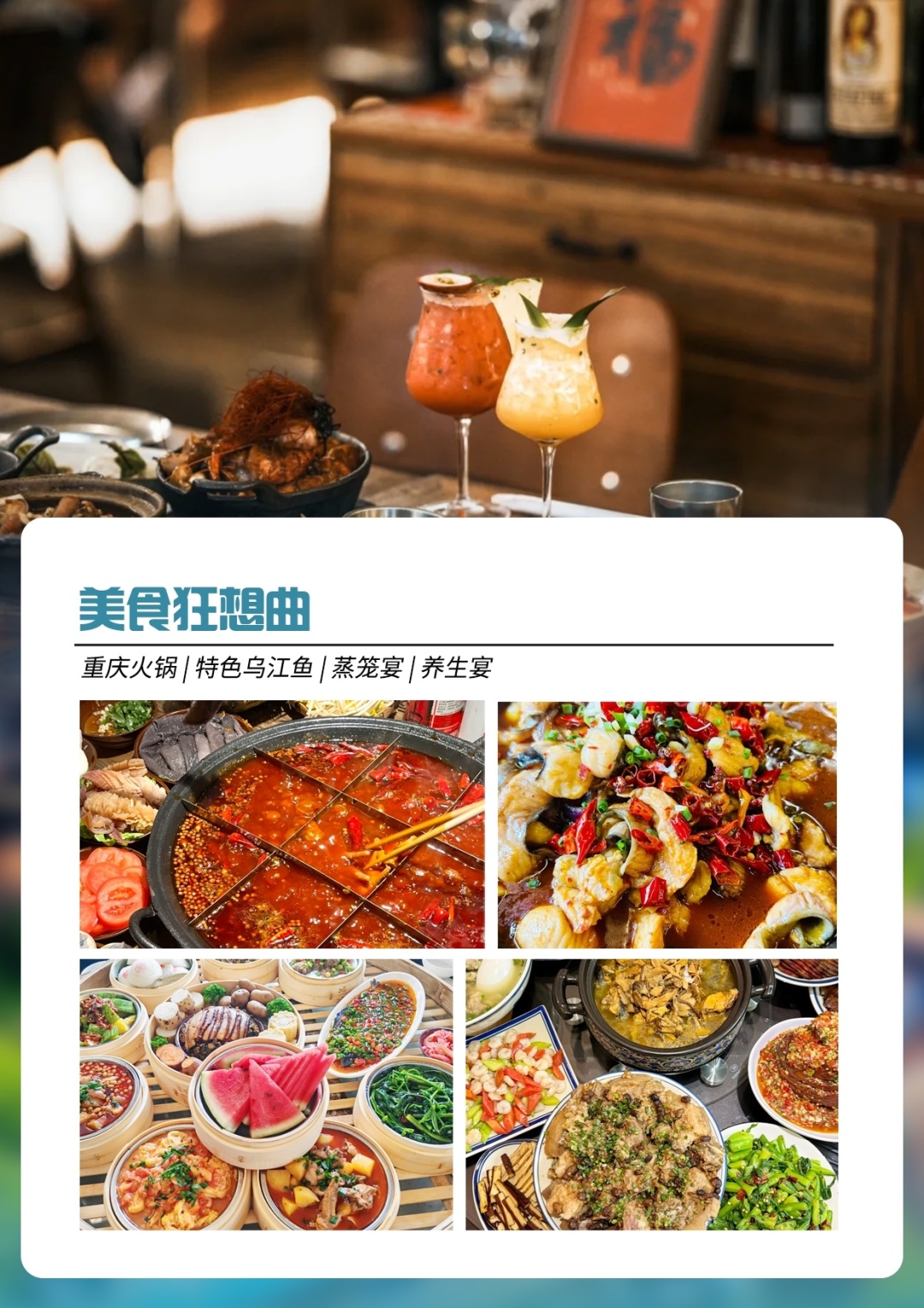 用餐:含 4早3正+升级1餐重庆特色火锅(不用不退费)