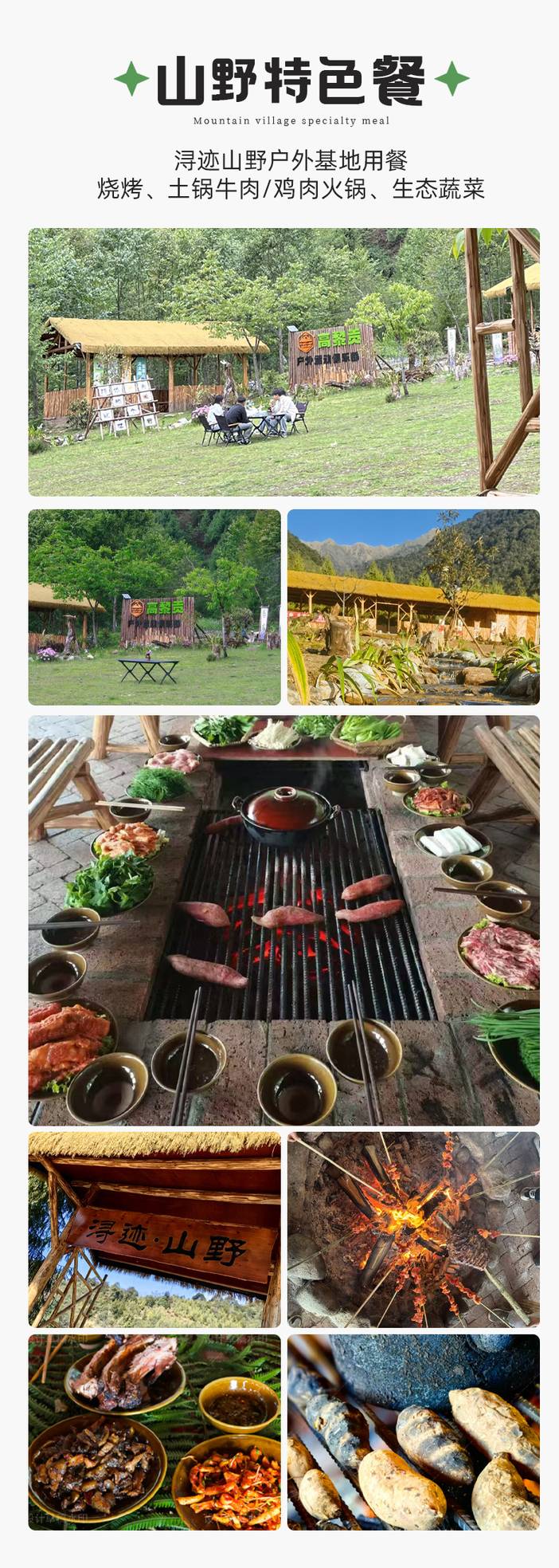 15:00 山野户外用餐(烧烤、非遗美食土锅牛肉、野生跑跳鸡肉火锅/大自然生态蔬菜/溪流冰镇野果)