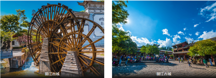 【丽江古城】有别于其他古城,一条条充满小资情调的街巷,各种特色小店、咖啡吧、充斥着浓郁的清新文艺气息。你可选一处咖啡厅座下静静的听一首民谣,或悠然的漫步在青石板路上,在丽江,你可以做一个任性的孩子,抛开生活的烦扰,尽情的幻想、玩乐,肆意的享受这里温暖的阳光。