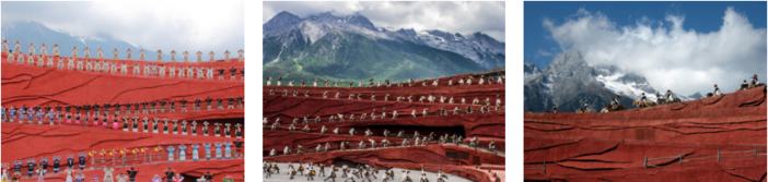 中午观看《印象·丽江》(演出时长约1小时)是由中国极具影响力的导演张艺谋执导的一部原生态大型实景演出。是目前仅有的一部在白天进行的实景演出。每一位演员都是当地人民,以雪山为背景,汲天地之灵气,取自然之大成,以民俗文化为载体,体现生命的真实与震撼。