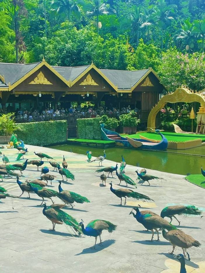 孔雀放飞是西双版纳原始森林公园一道亮丽的风景,三百只孔雀同时从高处飞往舞台,供客人拍照)欣赏西双版纳多民族乐器展览和民族歌舞表演;观赏亚热带雨林中植物风光;漫步热带沟谷雨林;感受神秘的原始森林气氛,别有一番风味。