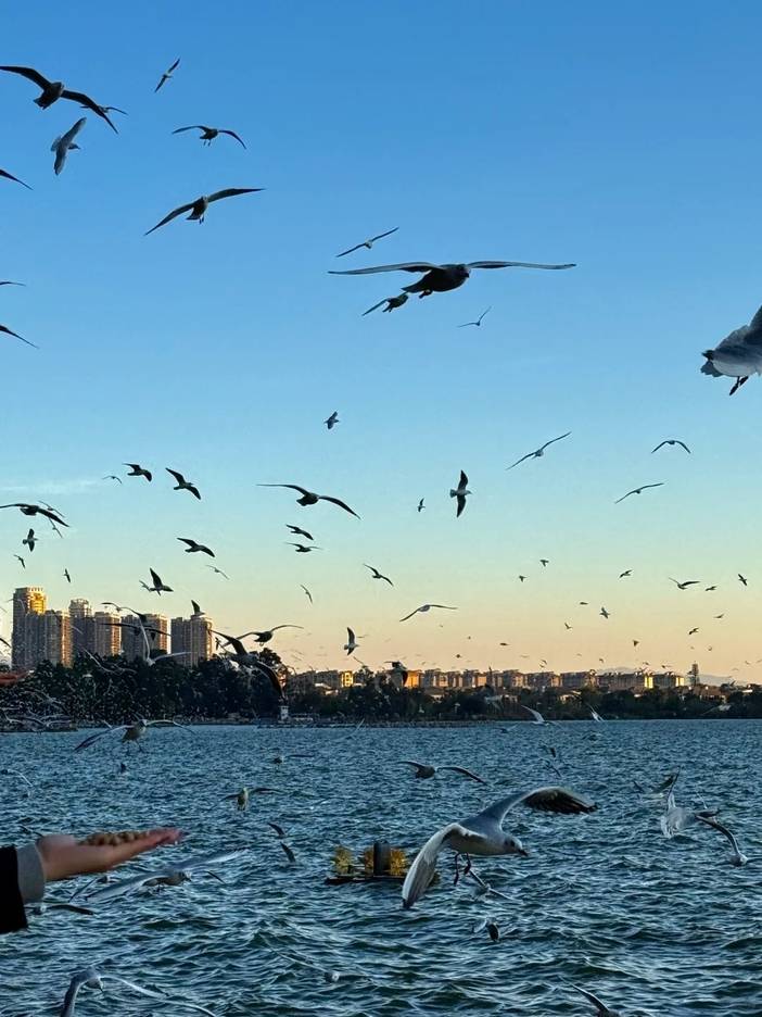冬天红嘴鸥的天堂,昆明的母亲湖,一起与海鸥共舞;