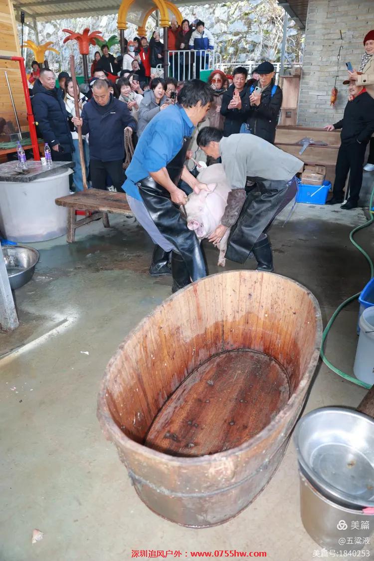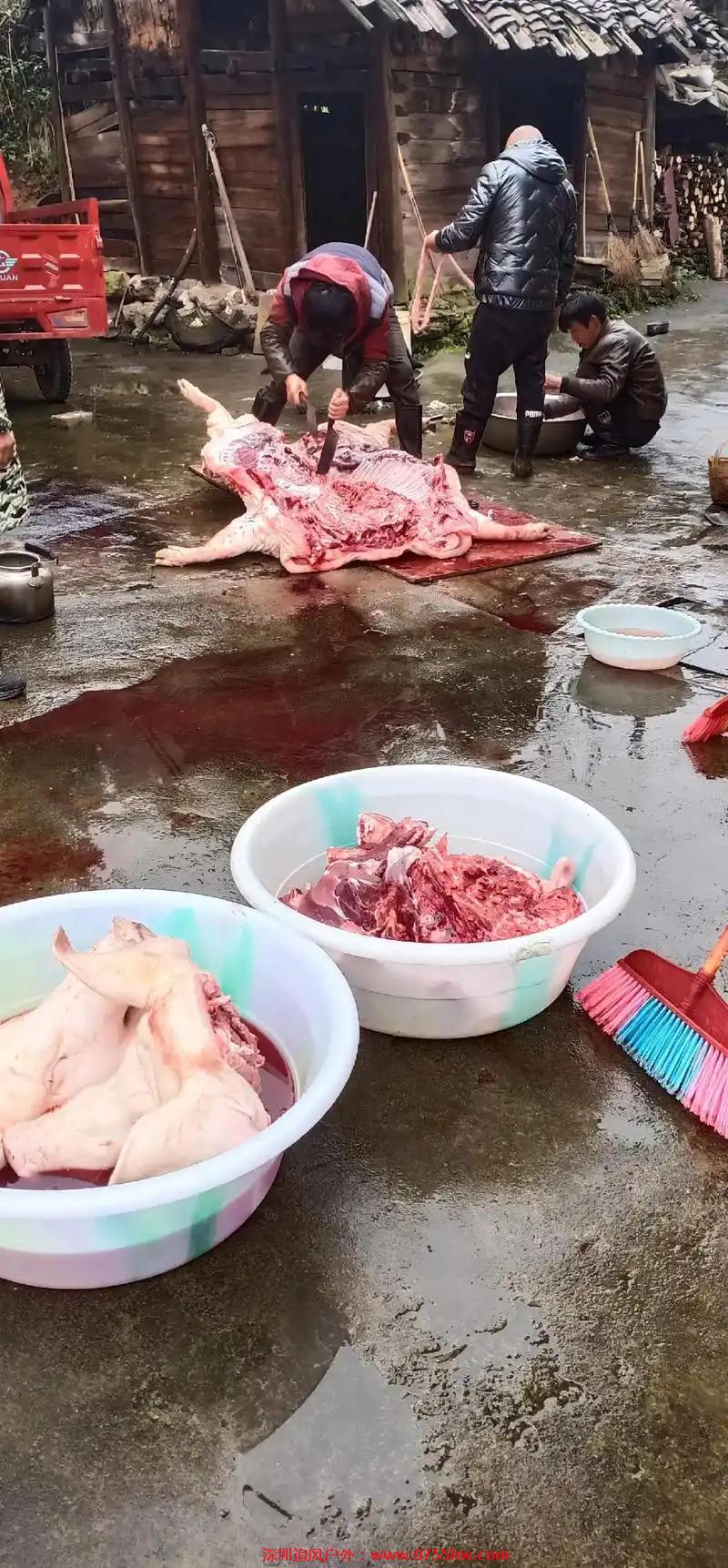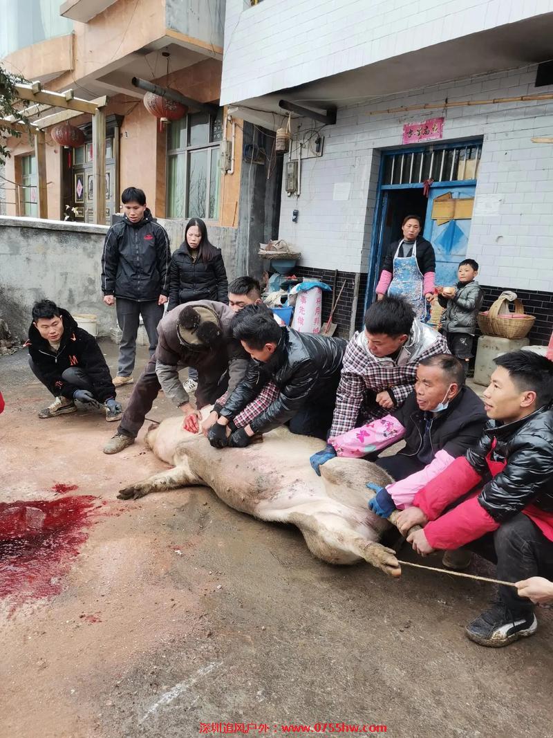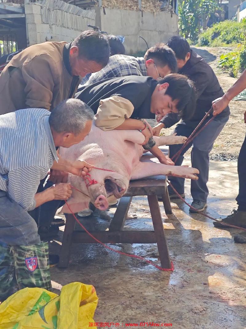 人齐后,安排师傅杀年猪了,想体验按猪的朋友可以上前帮忙按猪了,不过一定要注意安全,被猪T了,如果被哄我了,我们能做的只有帮你送机和报保险了!