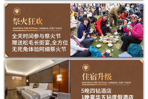 2)每年的祭火节活动节目安排不尽相同,行程描述仅供参考,以实际安排为准,参加活动注意安全,祭火节现场可能会没有信号,请按领队规定时间地点集合。