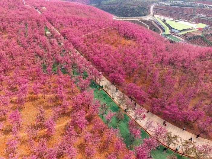 亮点:宜良3000亩粉色樱花+梯田状螺丝田+金鸡峰万亩油菜花海(服装COS)