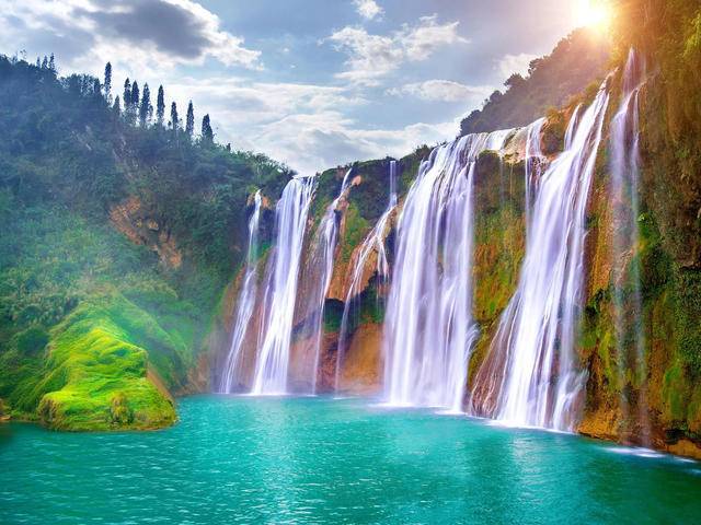 早餐后打卡屏边【牛角寨门】,寨门的设计者灵活地把两者相结合,展现出苗族应有的特色和气派,单从视觉上就能体验到当地的苗族文化。随后到达【滴水层瀑布】观景台,远观瀑布,瀑布从头顶倾泻而下,巨大的水汽带来原始的压迫感,震撼人心。