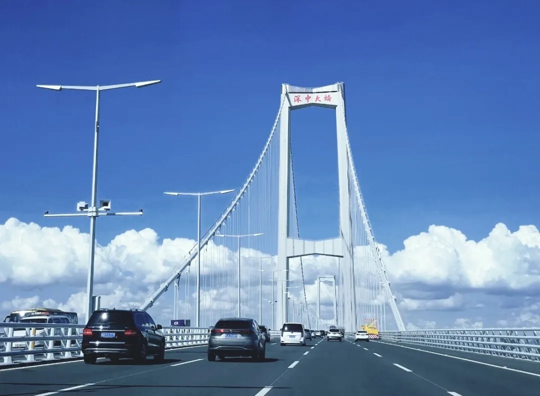 深中通道项目全长约 24 公里,其中桥梁工程长约 17 公里,用时8年建设的,采用设计速度 100 公里/小时的双向 8 车道高速公路技术标准,是国内首座采用钢壳混凝土组合结构建造的海底隧道,是集“桥、岛、隧、水下互通”为一体、当前世界上综合建设难度最高的跨海集群工程。是地处粤港澳大湾区核心区域的超级工程。