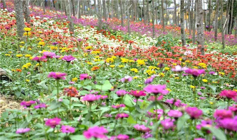 除了风铃花之外,丛林中还有百日草,格桑花,蜂室花,大丽花,硫华菊,二月兰,金鱼草,野花组合,紫罗兰,芝樱,吊钟花,等等,让您在花海中流连忘返!