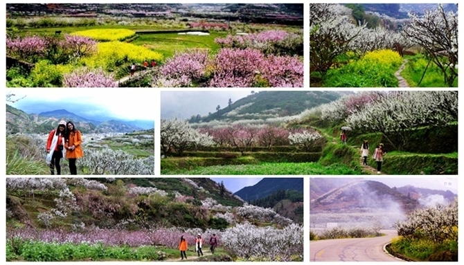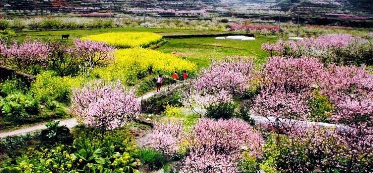10:30集合,领队带大家沿花海主线徒步进入- 遗世明珠的茶料村,感受桃李花开满天下的春天;漫步在九峰乡村田野间,漫山遍野的桃花,梨花,菜花,野花,一副世外桃源的画卷...让我们穿行在春天里,走在乡间的云里雾里,穿行于田间地头的花丛中;寻找最佳拍摄地点, 赏大片天然花海,可跟上领队到山顶拍全景。