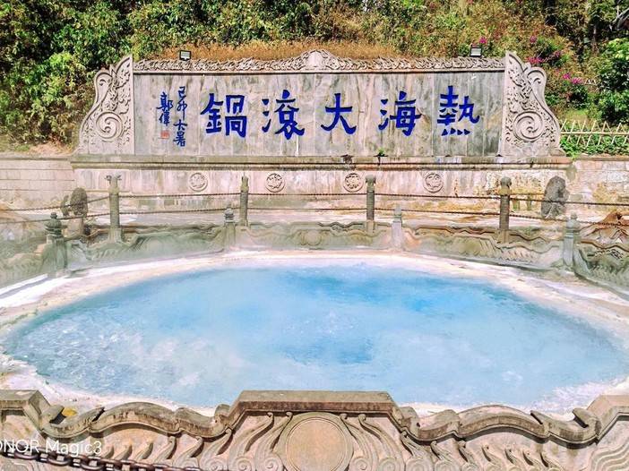 到达位于腾冲县城西南部清水乡【热海风景区】,俗称热海,景区内气泉、温泉群共有80余处,盛名已久的热海大滚锅终年翻腾97摄氏度的沸水,响声震耳,蒸汽冲天。热海是中国第二大热田,由热海石、大滚锅、浴谷、怀胎井、珍珠泉、美女池等构成。