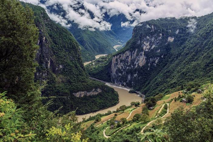 早餐后出发,前往【丙中洛】,这里是滇西北三大山脉(高黎贡山、独怒山、云岭乡)与三江(怒江、澜沧江、金沙江)形成倒“川”字的“三江并流”核心区,怒江自北向南贯穿全境。丙中洛正是怒江峡谷深处难得一见的开阔台地,怒江流经贡山县丙中洛乡日丹村附近,受王期岩壁和丹拉大山的阻挡,掉头急转,形成了一个半圆形大弯,成为怒江大峡谷的标志性景观,被称为【怒江第一湾】。