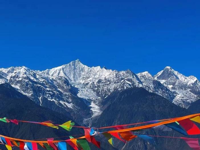 到达飞来寺入住酒店,可以正面观梅里雪山。