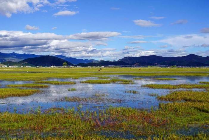 早餐后出发前往丽江,来到【纳帕海】,这是一个高原季节性湖泊,香格里拉人给这片水域冠与了许多美好的寓意,藏语称为“纳帕措”,为森林旁边的湖,春夏时节水草丰盛,绿意盎然,高原上各色小花肆意绽放。杜鹃、报春、狼毒、大钟花、龙胆,高原鸢尾等等种类繁多,较为适合喜欢观花的朋友。成片的绿色青稞地和金黄的高原油菜花,让纳帕海的夏天更富有层次感,周边藏族村里掩映其中,一片水乡泽国的繁盛景象。