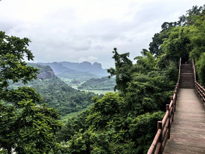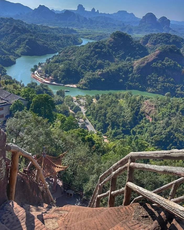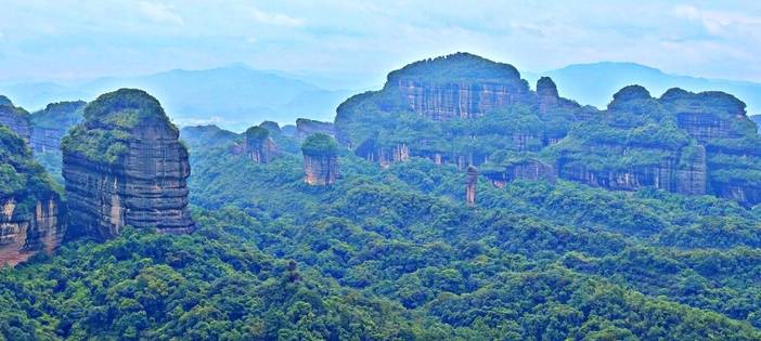 08:00 前往世界地质公园——【丹霞山】丹霞山是世界“丹霞地貌”命名地。丹霞山由680多座顶平、身陡、麓缓的红色砂砾岩石构成,“色如渥丹,灿若明霞”,以赤壁丹崖为特色。据地质学家研究表明:在世界已发现1200多处丹霞地貌中,丹霞山是发育最典型、类型最齐全、造型最丰富、景色最优美的丹霞地貌集中分布区。长老峰景区分上、中、下三个景观区:下层景观区有始建于北宋的锦石岩石窟寺、长天一线、龙磷片石、五色间错大斑石等典型的赤壁丹崖景点;中层为别传禅寺景观层,有岭南十大禅林之一的别传禅寺和鸳鸯树等景点;登丹梯铁索即至上层景观区,长老峰、海螺峰、海珠峰三峰并峙,环顾四周,丹霞秀色,一览无遗。其中观日亭是晨观日出,昏赏晚霞的好去处。