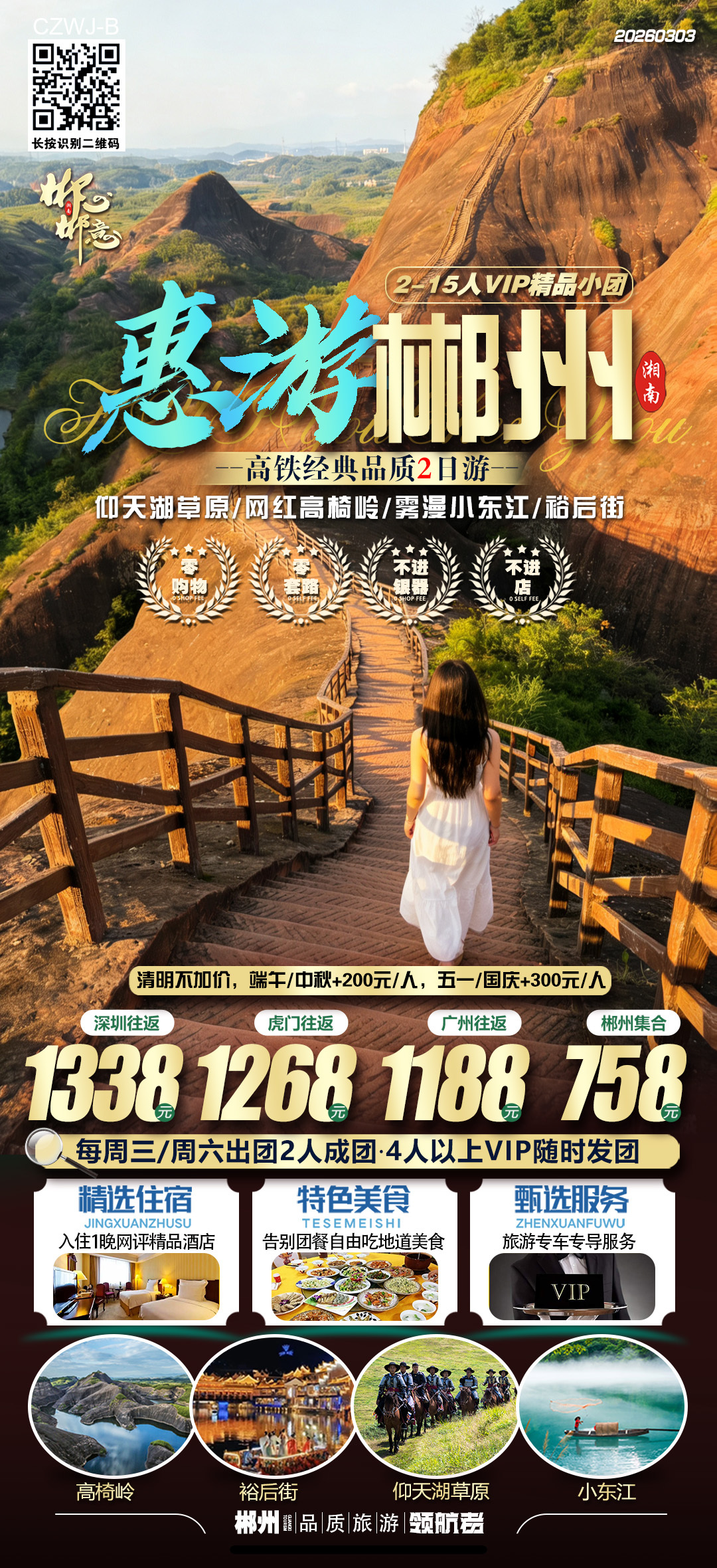 晚上自由活动,自由约伴晚餐;晚饭后逛郴州的“凤凰古城”裕后街,欣赏夜色,享受当地美食,想旅拍的小伙伴可以租个民族服饰旅拍哟!