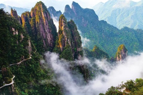 10:30 深度游览五指峰景区,漫步悬空栈道,南中国最长的悬空栈道;总长约8公里,海拔1400米至1600米,两层栈道,全程无障碍观光环线,登高山、临绝壁如履平地,尽享“非人”奇遇。