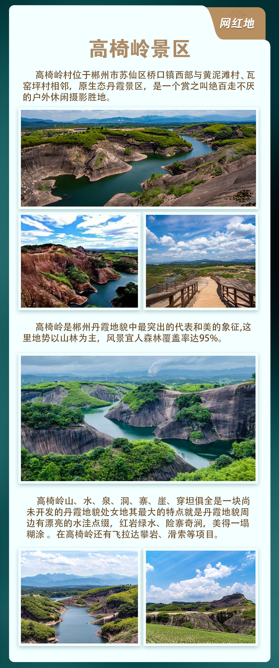 行驶时间: 约40分钟 | 游览时间: 约2-3小时,高椅岭山水犬牙交错,奇形怪状,不是鬼斧神工,而是上天的刻意而为之!惊而不险的悬崖陡壁,绝对惊险刺激!山很青,水很秀!很原始,很安逸!整个美丽的山脊如巨龙的背。整个风景区集山、水、林、洞、佛为一体,聚雄、奇、险、巧为一身。明代大旅行家徐霞客曾赞叹“江口诸峰,俱石崖盘立,无一山不奇,无寸土不丽”,并雕刻“寸土佳丽”留存至今.
