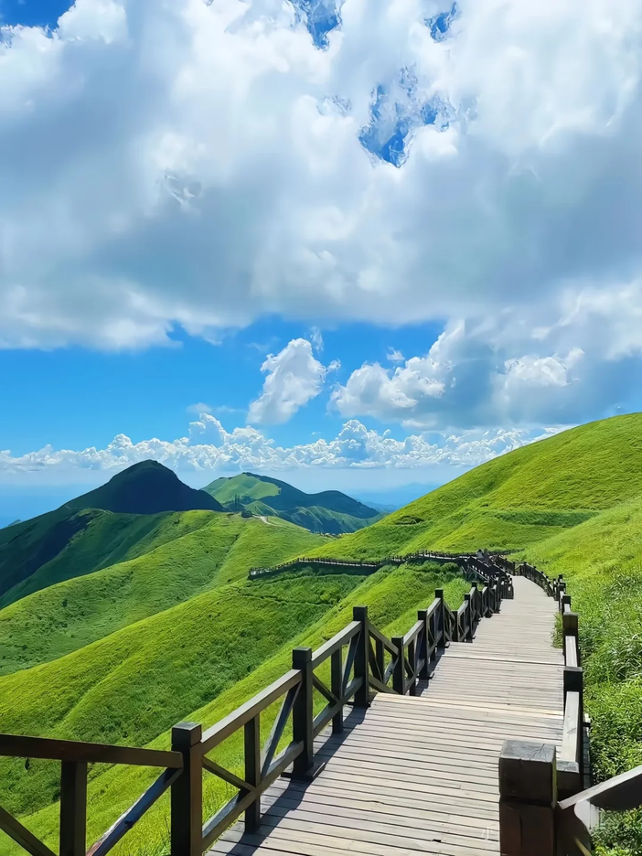 登武功山,看十万亩草甸、云海日出。体验智能登山,可徒步露营,在世界地质公园释放激情。