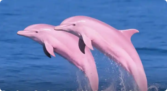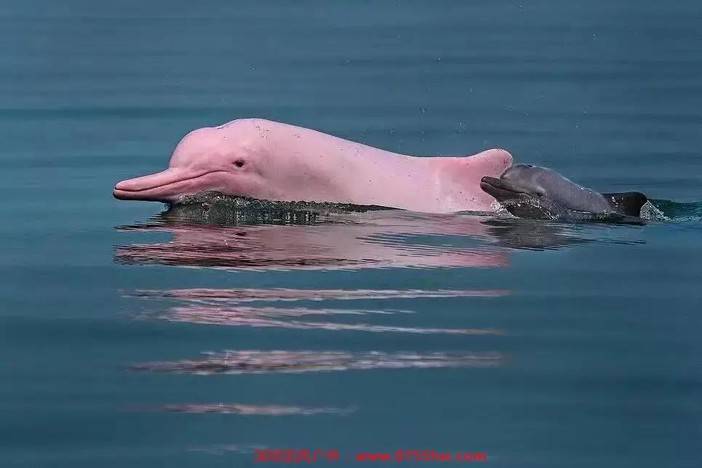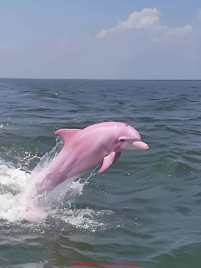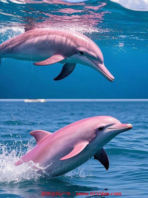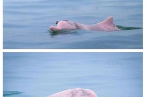 体色变化:海豚体色随年龄增长而变化,并非品种差异。幼年呈深灰色,青年灰色带白斑,成年后逐渐变为粉色或白色,老年个体接近全白 。