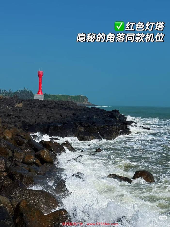 1、红色灯塔是《隐秘的角落》同款取景地!正红色塔身+黑石海滩,随手拍都是电影感;