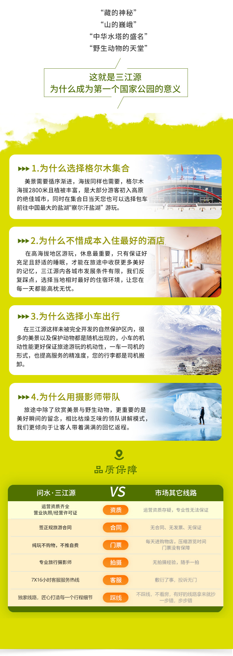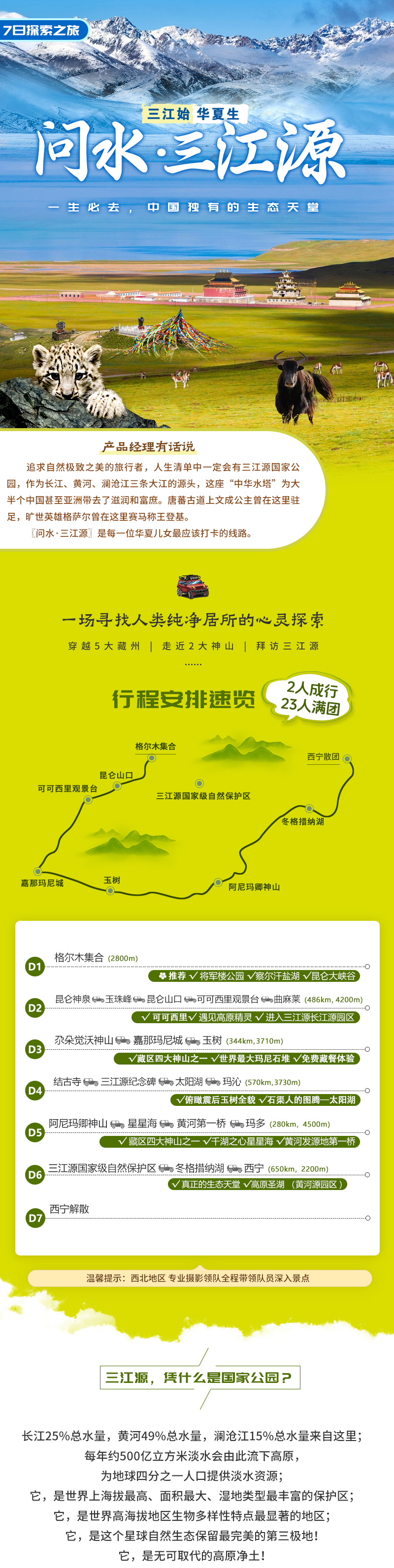 2.由于我们进入的是三江源国家公园黄河源,请小伙伴们务必保证绿色环保,带走自己所产生的一切生活垃圾,如有能力也请在游玩的同时捡走其他垃圾,为我们共同守护的三江源贡献一份力量;