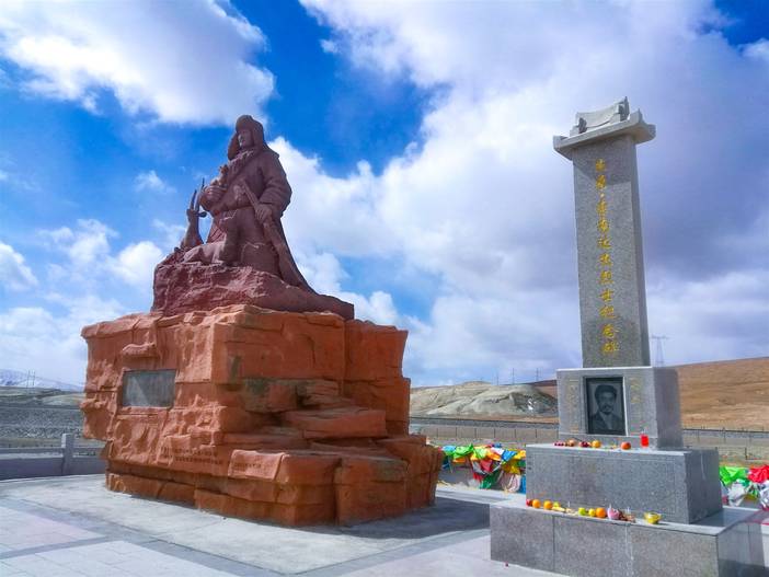 车子继续向前行进,来到【三江源纪念碑】,这是每一位来三江源旅行的游客必打卡的景点之一,三江源纪念碑标志着【三江源自然保护区】的正式成立,基座高4.2米,象征三江源4200米的平均海拔;碑体由56块花岗岩堆砌而成,象征中国56个民族;碑体上方两只巨形手,象征人类保护“三江源”。