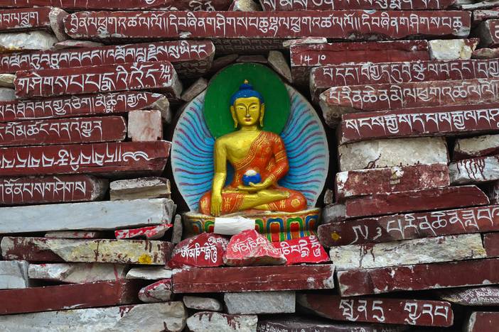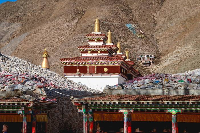 在藏区,大小不等的玛尼石经堆随处可见,然而在青海的玉树就有这样一处玛尼石堆,世所罕见。它将藏族人对灵石和佛教的崇拜做到了极致,也做到了世界之最。游览完神山之后我们即将来到玉树市的新寨村,这里的玛尼石堆经过300多年不间断的堆积,已经积累了刻着各种经文图案的玛尼石25亿块,真是气势恢宏。因此有个形象的名字:嘉那玛尼石经城。这里也被誉为世界上最大的祈福许愿之地,还被载入了吉尼斯世界纪录。