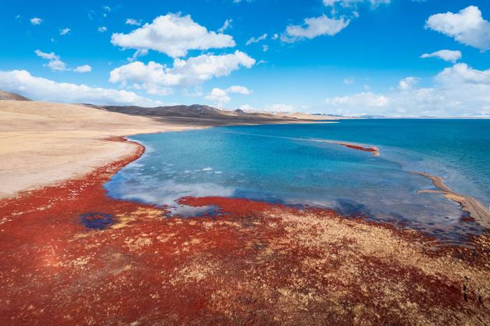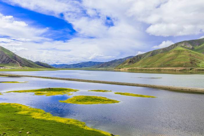 下午,我们进入四川甘孜藏族自治州,路过一片还未被开发的自然湖泊—【太阳湖】,它地处于川青藏三省结合部的石渠县,太阳与火是石渠人的图腾,作为四川省海拔最高、面积最大、位置最边远的县,石渠也被称为“太阳部落”,太阳湖在阳光的照耀下,呈现深蓝色,蓝的非常纯粹,随着天气的阴晴变化,湖水的颜色也随着变化。