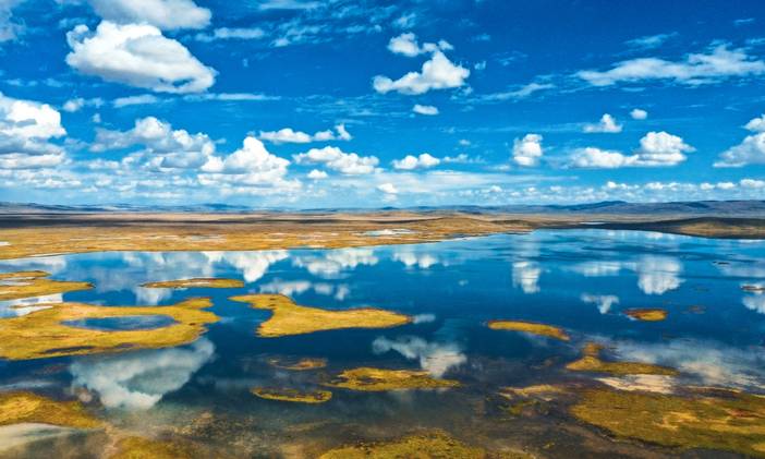 下午的重头戏是黄河源头的千湖之心—【星星海】,说起黄河,大家脑海里出现的可能都是她携带大量泥沙、气势磅礴一泻千里的形象。但是,黄河上游却完全是截然不同的景象。黄河源园区独特的地理环境还孕育了丰富的湿地资源,星星海等高海拔天然湖泊湿地间也分布有一定面积的高寒沼泽草甸湿地。站在星星海边,你不禁会感叹:“融广阔之蓝天入水心而动,倚茫茫之原野共大地而歌”。