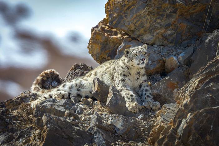 “冬格措纳“的意思是“一千座山峰环绕的湖”,这里是一个世外桃源,群山阻隔下形成了独特的、相对温暖湿润的小气候,也造就了遗世独立的陡峭山峰交织丰美水草的圣湖美景,供养了玛多县最独特的高山裸岩生态系统及其生物链。这里的山脊侵蚀风化严重,【雪豹】完美融入了这片圣境。所以在冬格措纳湖区域,并不是访客找雪豹,而是访客被雪豹“观赏”。