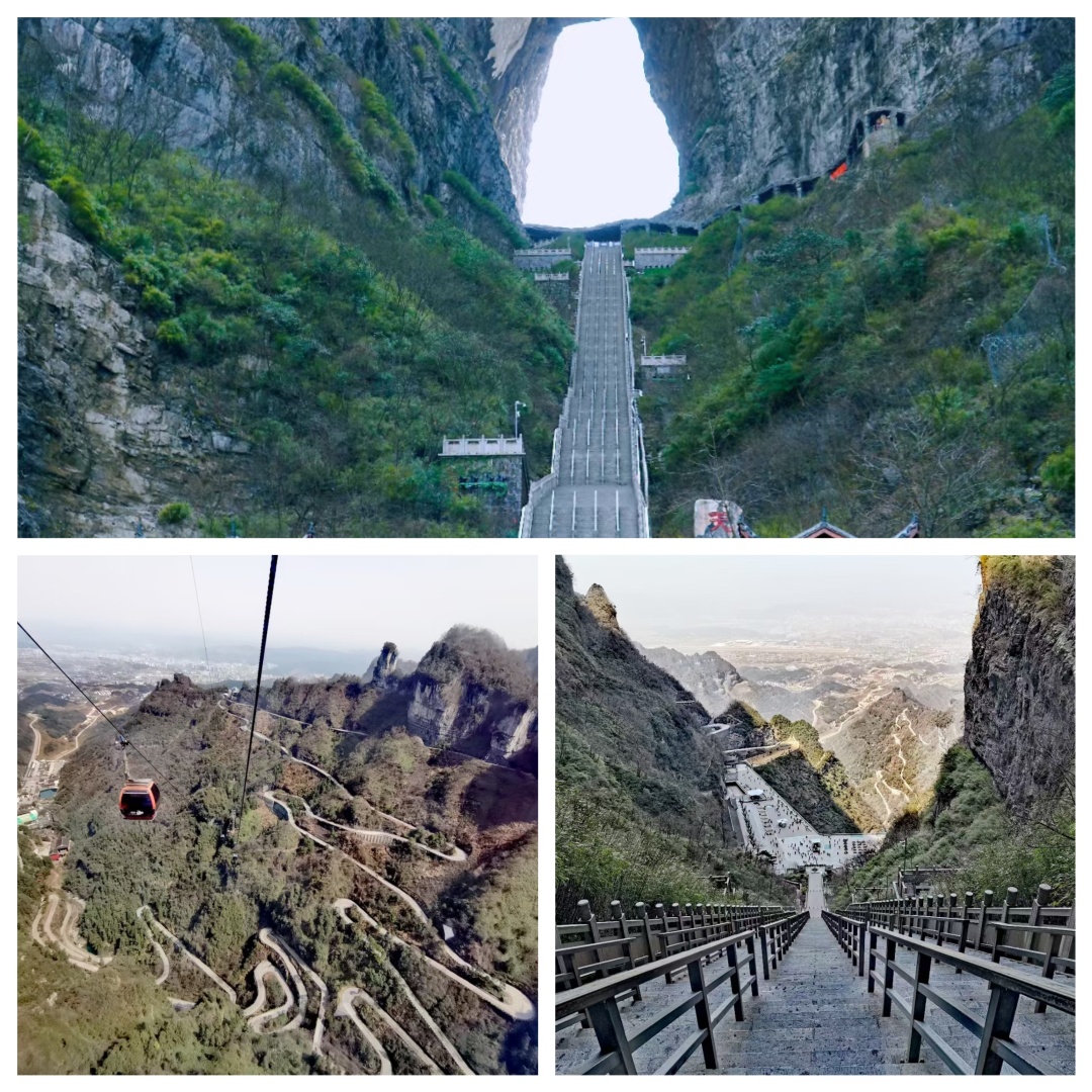 ④赏被称为壮观“仙山”的天门洞-惊险的天门山999级天梯。