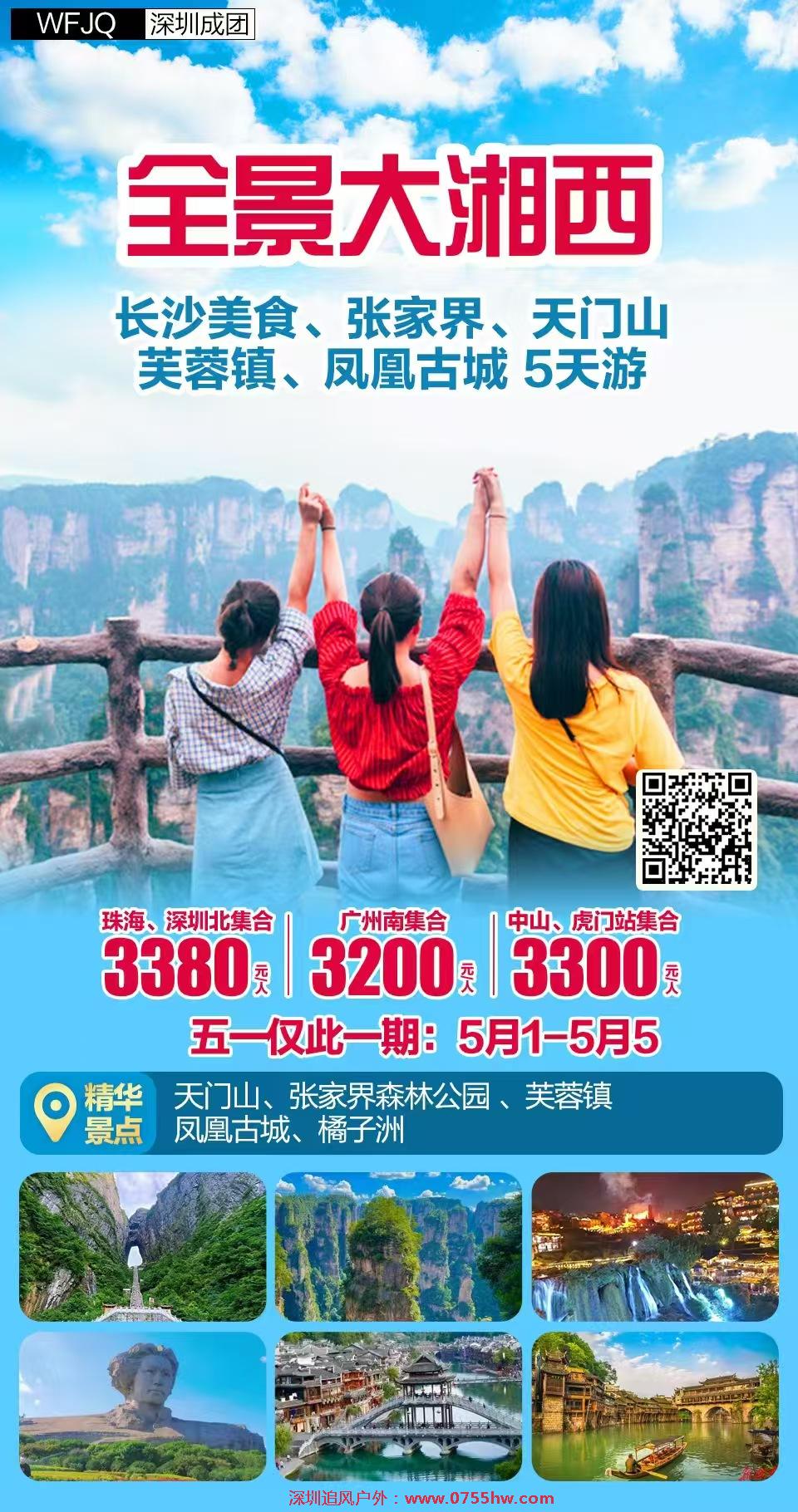 长沙、张家界、天门山、芙蓉镇、凤凰古城 高铁5天游