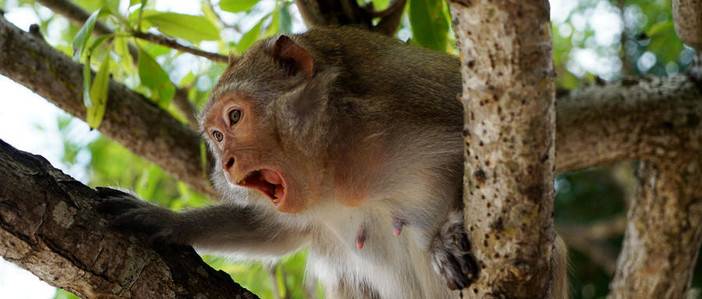 湖水清澈见底,水平如镜,从上面俯瞰圆如满月,所以称为月亮湖,四周绝壁上树木茂盛,是猴子的天堂,一群猴子在玩耍,哄抢着游客投过去的食物。猴子敏捷、滑稽的“表演”动作,也送还给游客无尽的欢乐。
