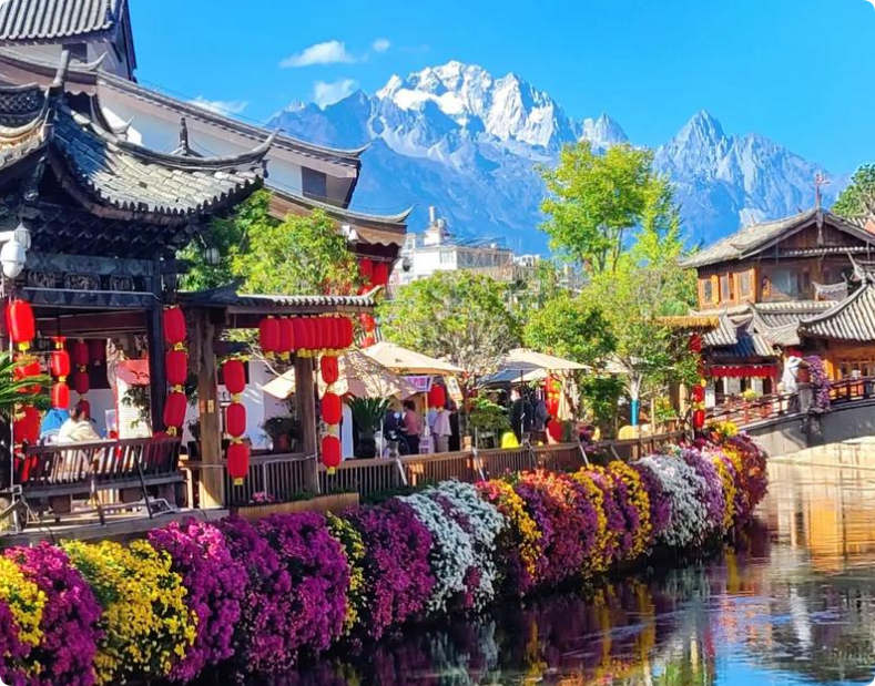 下午指定时间集合前往丽江,约2小时车程,到达丽江入住酒店,之后游览世界文化遗产、有“东方威尼斯”之称的丽江古城【四方街】,观赏以四方街为中心三河环绕的大研古镇,街区流水如织,从玉龙雪山流下的清溪穿街绕巷,民居多为“三坊一照壁、四合五天井”的传统布局,宛若高原上的江南水乡。