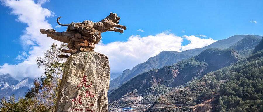 虎跳峡金沙江沿石鼓下行,到距石鼓30多公里的下桥头与中甸来的硕多岗河汇合,过险滩,越断崖,水从空坠,狂涛怒卷,振撼山谷,奇险万状,令人惊心动魄。江流最窄处,仅约30余米(一说20余米,一说10余米),相传猛虎下山,在江中的礁石上稍一顿脚,便可腾空越过,故称“虎跳峡”。。