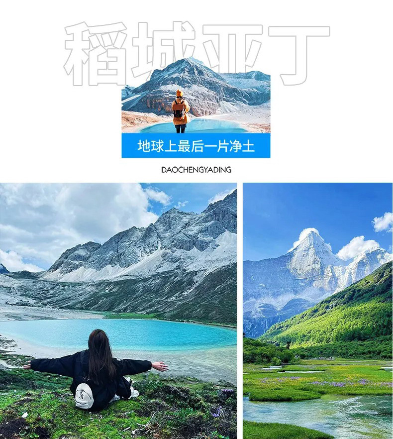 【稻城亚丁,平均海拔约4000米,游玩时间约1-2天,已含门票,自理观光车120元/人 电瓶车70元/人(景区代步,自愿选择)、骑马300-500不等(景区代步,自愿选择)旺季请自行提前预约,现场刷证入园:线路参考(长线):游客中心—扎灌崩—冲古寺—洛绒牛场—牛奶海—五色海景区