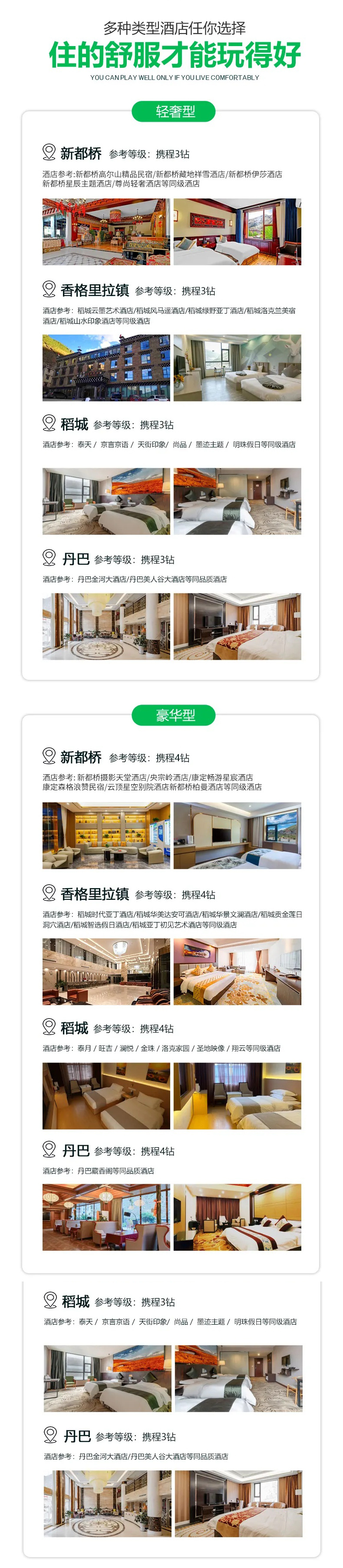 【关于大床】因藏区酒店大床房稀缺,行程住宿默认为标间;有大床需求的游客请提前告知客服,我司尽量优先安排,若无大床则安排标间;