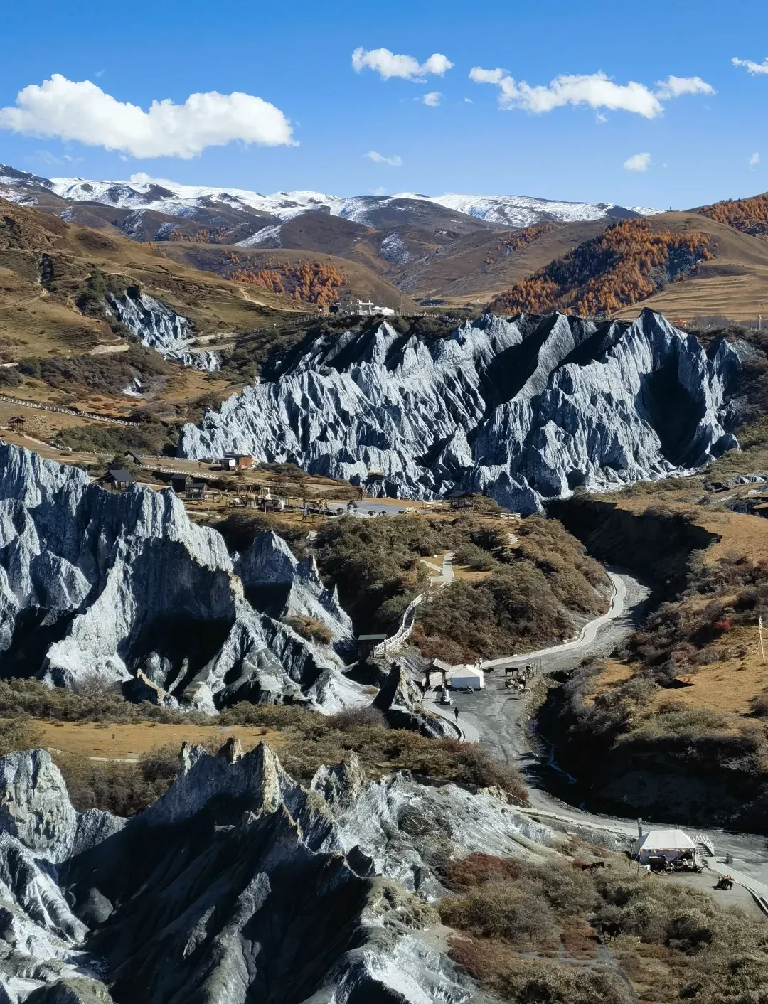 14:20-19:00:出发前往香格里拉镇,里程240km,行车约4.6小时;到了之后,【尊胜塔林】位于海拔3745米的稻城县内,就在县城的桥头,这座白塔是稻城整个县城最大的室外佛塔,是亚丁风景区以外的城市地标,它还是四川川省最大的佛塔群落。转山转水转佛塔,是当地人民的信仰。